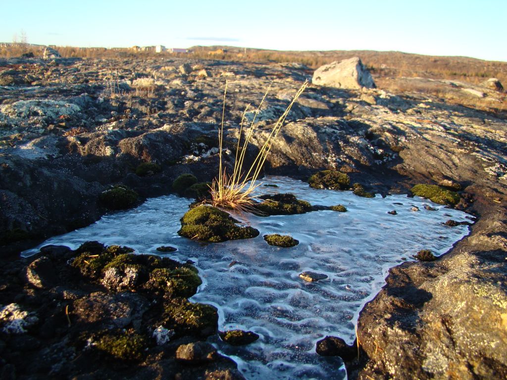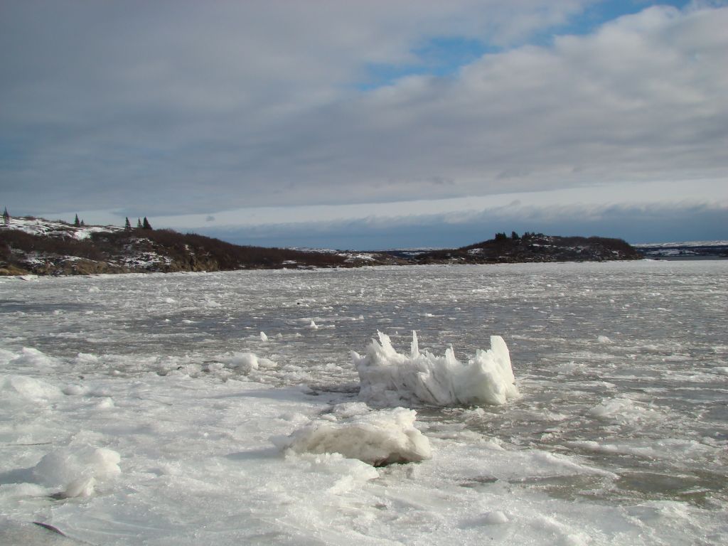 Il arrive souvent que le matin soit brumeux. Un spectacle de toute beauté. Il y a quelques tempêtes de neige accompagnées de fortes rafales de vent pouvant atteindre 50km/h. Ces conditions sont alors accompagnées de bourrasques de neige. La nature se déchaîne. Lorsqu’on sort pour une promenade, on ressent l’eau gelée sur nos cheveux, nos sourcils, les vêtements craquent. Je passe mes fins de semaine à marcher dans la toundra, sur la rivière et le lac.