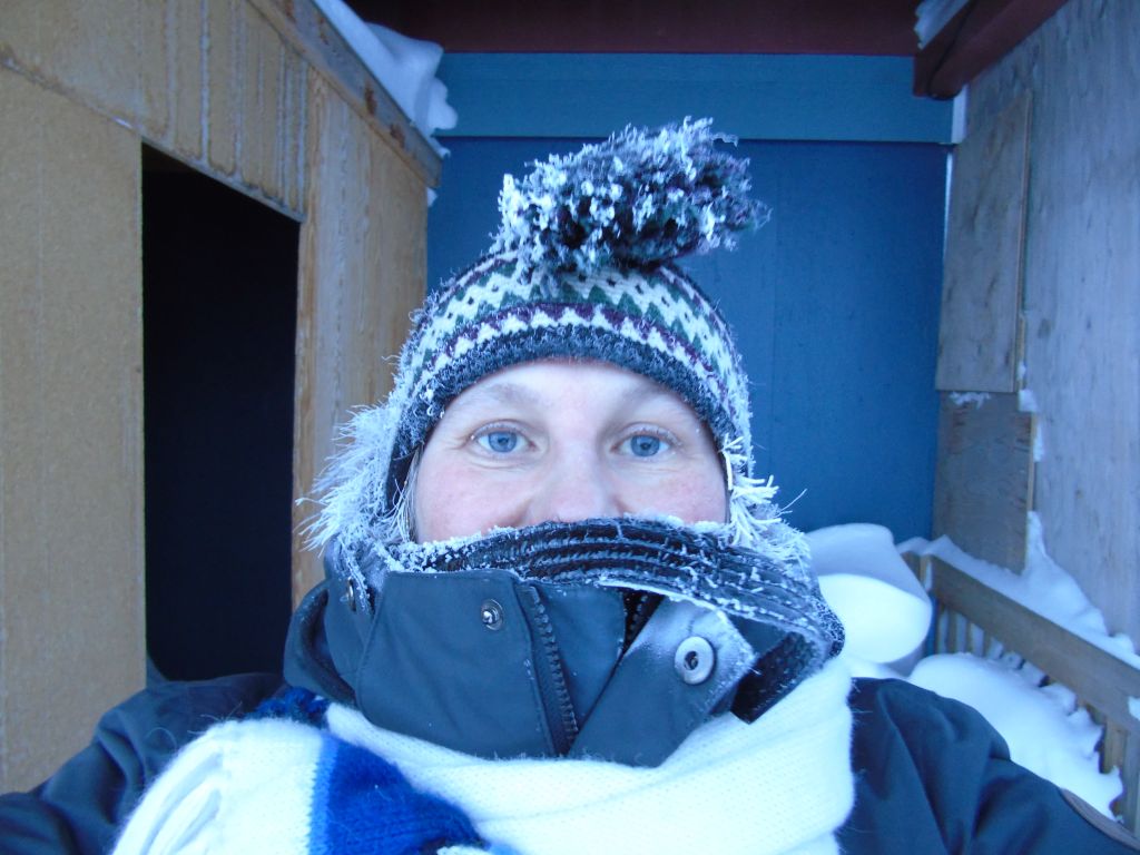 On m’a toujours dis que les mois de janvier et février sont les pires mois dans le Grand Nord. Oui, Janvier était vraiment froid. Le soleil était là mais ne réchauffait pas beaucoup. La clarté était de 5h par jour. Il faisait nuit à 14h30. Quand il n’y avait pas de vent et que le soleil était au rendez-vous il fallait en profiter pour sortir. Je faisais des promenades en raquettes même si ce n’était que pour 1 heure.