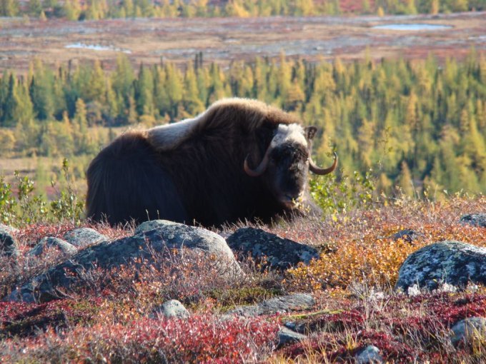 C’était MON MOIS préféré. Ma saison préférée qui est l’automne. La toundra se pare de couleurs variées. Les feuilles changent de couleurs (ocre, rouge, jaune, vert). C’est la cueillette intense des baies sauvages. C’est surtout le mois ou j’ai pu observer un troupeau de bœufs musqués dans la toundra. Il y avait là, toute une famille qui broutait paisiblement. Nous nous sommes approchés, tranquillement, en restant sur nos gardes, en évitant de les observer lorsqu’ils nous regardent. C’est tout un art ! J’ai vécu la plus forte émotion de ma vie. Je peux confirmer maintenant que le mois de septembre est mon mois préféré.