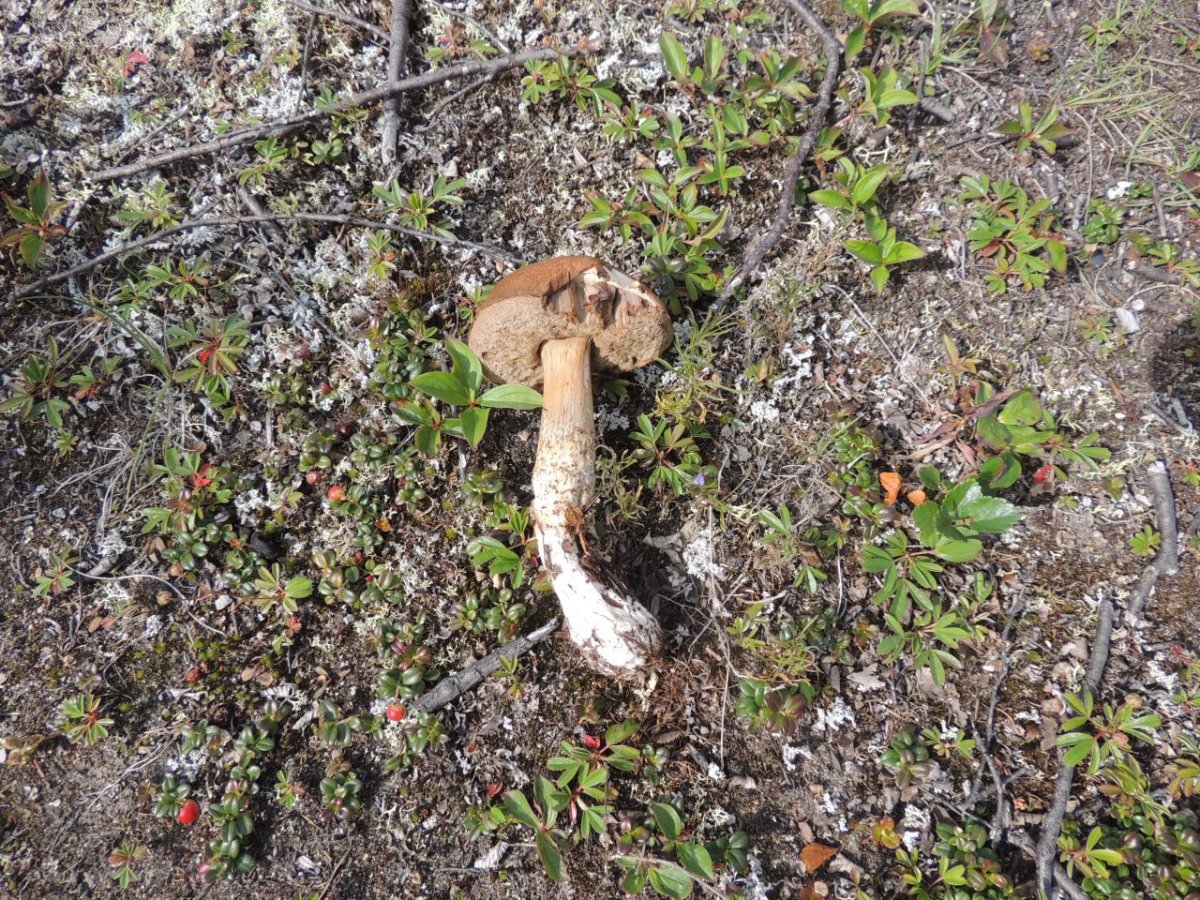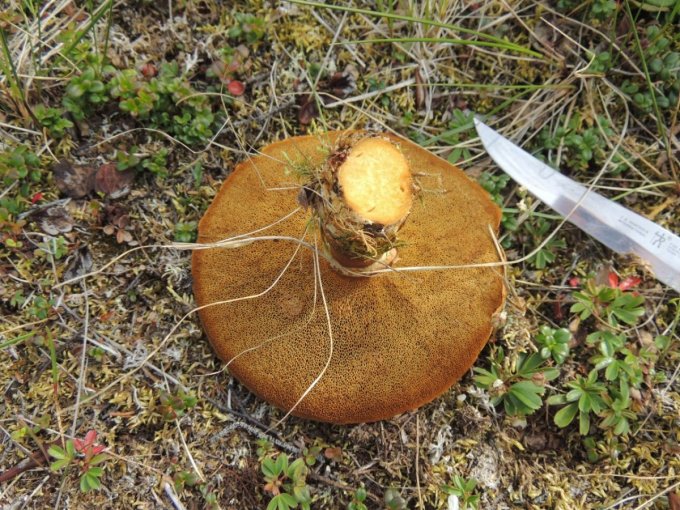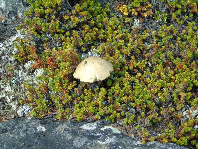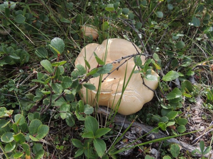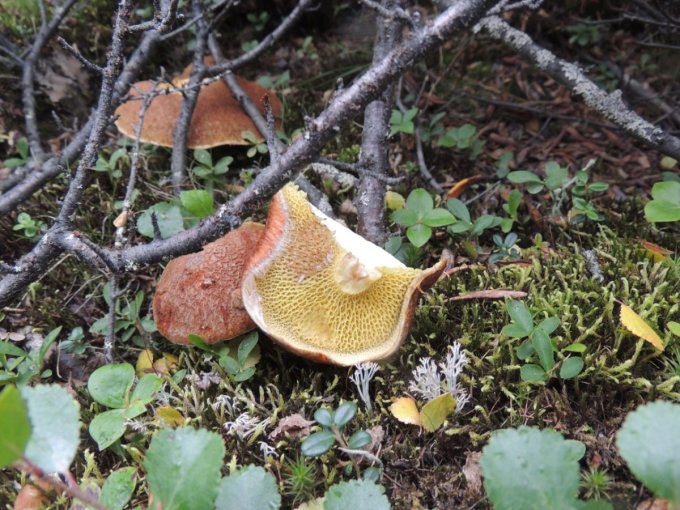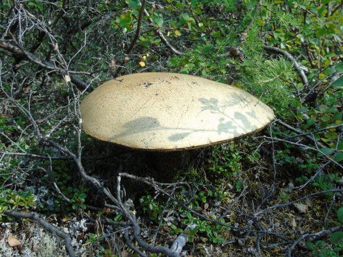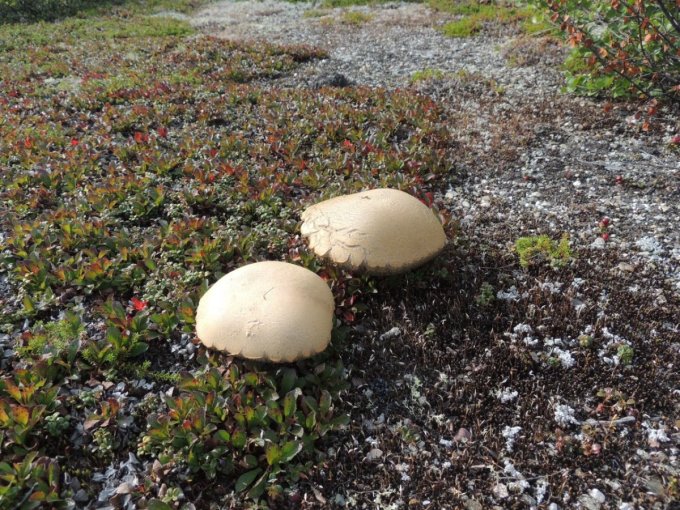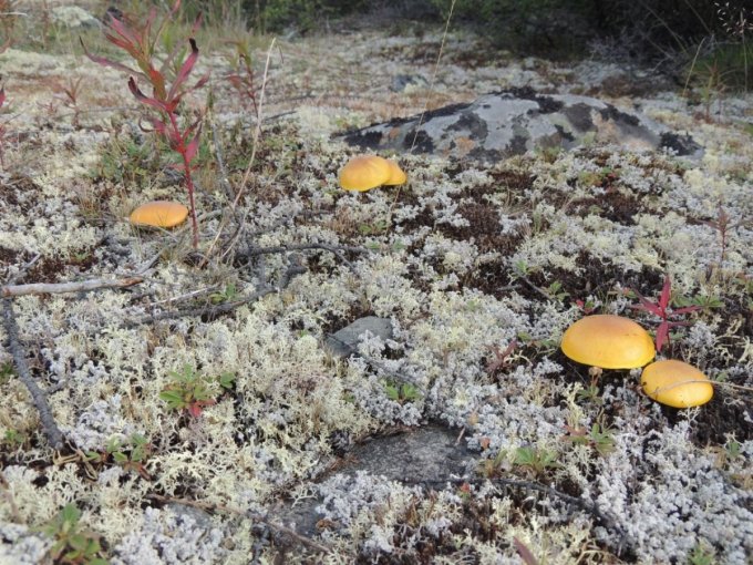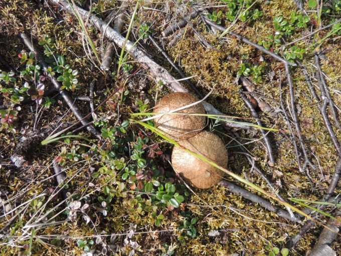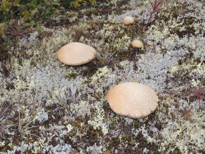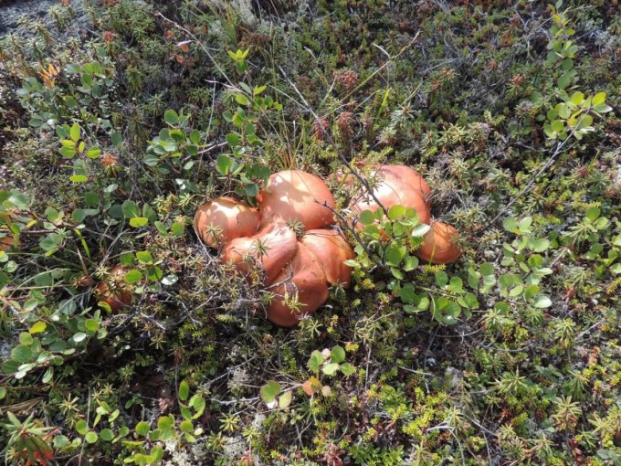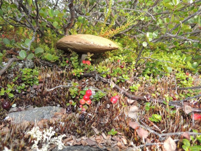Chacune de nos sorties, nous voyons de nombreux cèpes. Dans la taïga aussi bien que dans la toundra. Il y a du bolet insigne et du Bolet rugueux, du bolet jaune. Pour les autres je n’en suis pas sur. Nous en avons vu certain de taille imposante ! Nous ramassons les meilleurs et nous les mangeons. Ils sont délicieux. Souvent, ils poussent au milieu de bleuets. Nous avons les légumes et le dessert ensemble et même parfois la viande, certains sont pleins de vers.