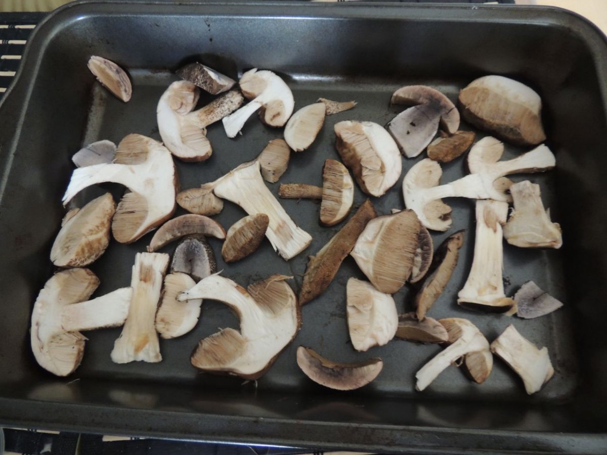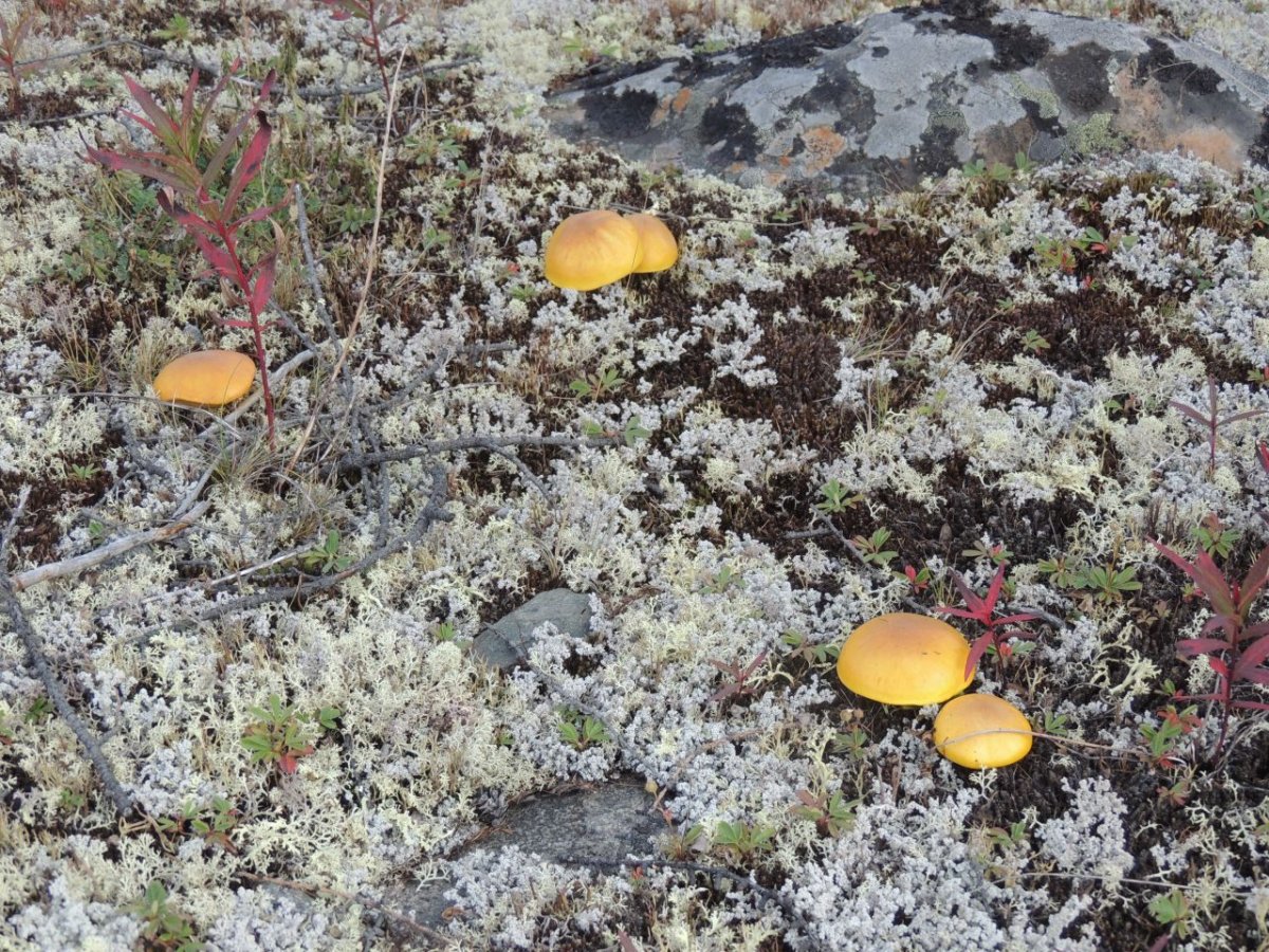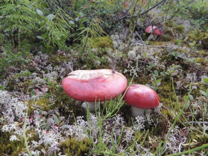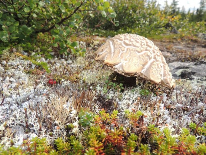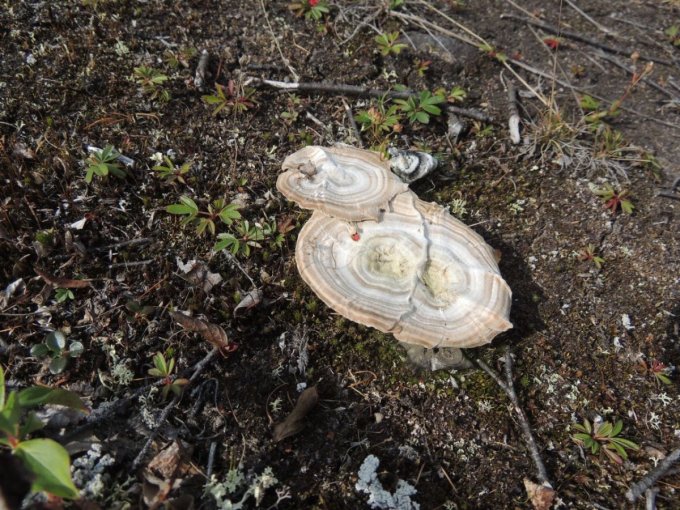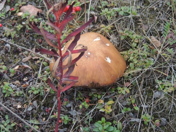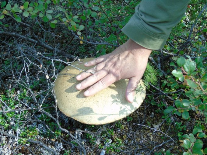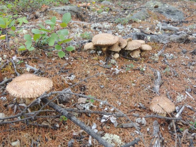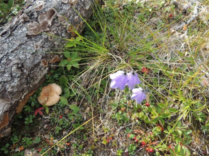 Chacune de nos sorties, nous voyons de nombreux cèpes. Dans la taïga aussi bien que dans la toundra. Il y a du bolet insigne et du Bolet rugueux, du bolet jaune. Pour les autres je n’en suis pas sur. Nous en avons vu certain de taille imposante ! Nous ramassons les meilleurs et nous les mangeons. Ils sont délicieux. Souvent, ils poussent au milieu de bleuets. Nous avons les légumes et le dessert ensemble et même parfois la viande, certains sont pleins de vers.