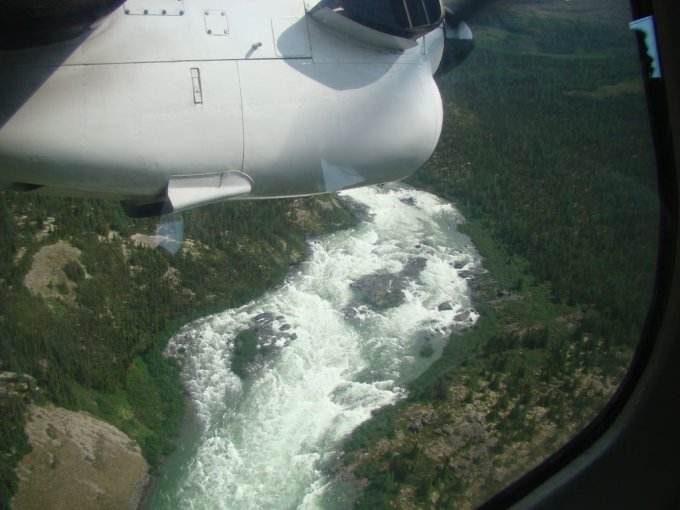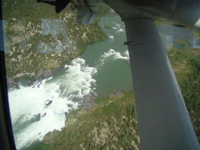 Pendant que les agents du Parc charge l’avion avec les kayaks et tout le matériel de cette expédition et ramène le groupe au village, nous en profitons pour marcher vers les chutes et faire un pique-nique devant les chutes.