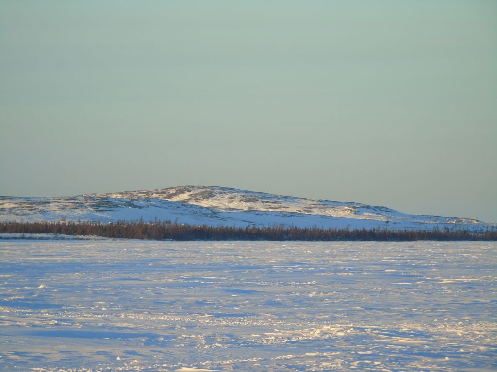 A 14h00, le soleil touchait déjà presque l’horizon. Il faisait froid et la promenade fut courte. On peut imaginer l’immensité de ce lac à quelques kilomètres du village. C’est un lieu de rassemblement pour les habitants de Kuujjuaq. En été, plusieurs habitants y viennent pêcher, faire du canot. En hiver, c’est le lieu pour des courses de motoneiges, pour la pêche sous la glace, pour se promener la fin de semaine.