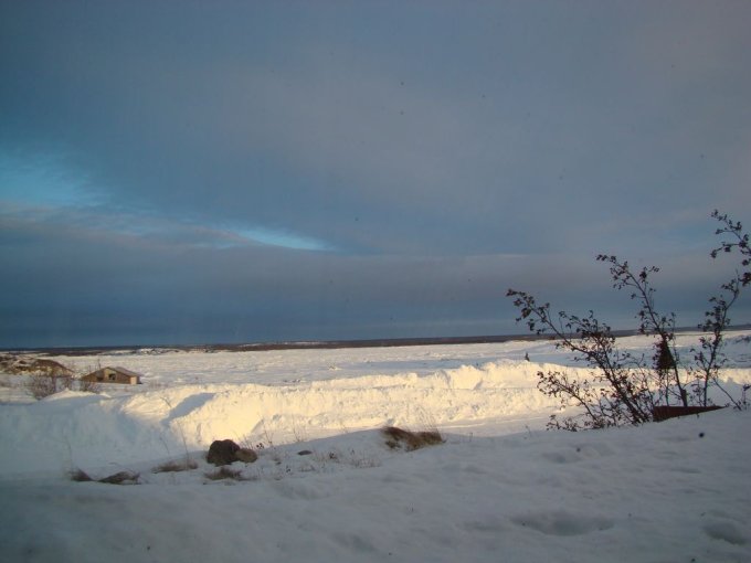Encore grâce à Facebook, j’ai vu qu’il jouait un film au Katittavik Town Hall, dans le cadre de la journée canadienne du film « Snow Walker », en plus la séance était gratuite ! C’était vraiment un film très intéressant sur un pilote de brousse qui crashe son petit avion dans les Territoires du Nord Ouest en compagnie d’une femme autochtone atteinte de tuberculose qu’il doit amener en ville. Ils se retrouvent en pleine toundra a braver les mouches, le froid, la neige, les vents… des paysages magnifiques identiques à ceux que je voie ici. La salle est belle, grande et utilisée pour d’autres activités dans la communauté.