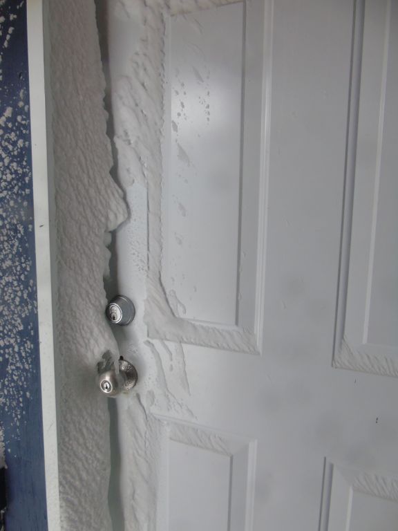 Vers 11h, je me dis qu’il faut bien que je sorte pour voir ce spectacle. Je me préparer et je m’habille comme il faut. J’ouvre la porte d’entrée .... waow !! extraordinaire, le vent a apporté la neige jusque sur la porte et sur les côtés. C’est génial !