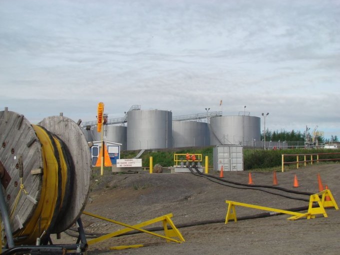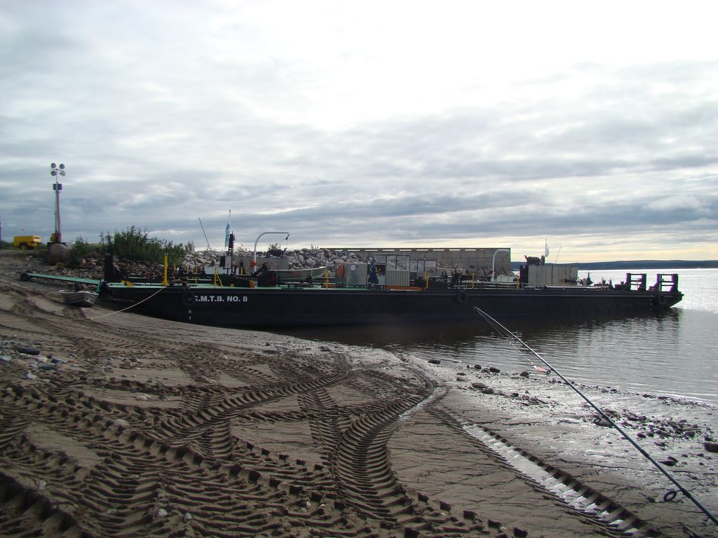 En partant, nous voyons de l’effervescence au quai. Des barges sont révisées, réparées. Tout doit être fin prêt pour accueillir les gros bateaux qui vont bientôt venir pour ravitailler le village en pétrole.