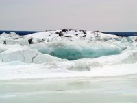Dès que nous atteignons la rivière, le paysage est magnifique. Les blocs de glace que nous avions vu lors de nos sorties précédentes sont d’un bleu clair splendide !!!